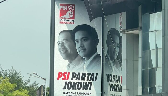 Baliho Partai Solidaritas Indonesia (PSI) dengan gambar Ketua Umum PSI, Kaesang Pangarap & Presiden Jokowi