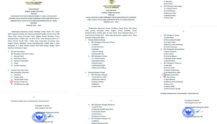 Melanesiatimes.comย – salah satu perseta seleksi Calon anggota KPU Kabupaten Tambrauw yang dinyatakan lolos lima besar berdasarkan surat keputusan KPU RI Nomor.71/SDM.12-Pu/04/2023, kemudian dibatalkan dengan nomor Surat. 73/SDM.12-Pu/04/2023 Diduga masuk angin. Melalui via tlp dan pesan whatsappnya Selasa (25/07/2023). Yohanis Fiktor Baru menyampaikan Sebagai warga negara tentu semua menginginkan kompetisi yang sehat dan bermartabat untuk […]