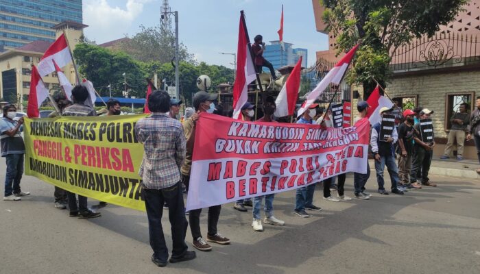 Melanesiatimes.com – Markas besar (Mabes) Polri digeruduk oleh sekelompom Gerakan Aktifis Mahasiswa Islam Indonesia (Gamis-Indonesia) Mereka datang karena merespon pernyataan Kamaruddin Simanjuntak yang sangat mencoreng institusi Polri.