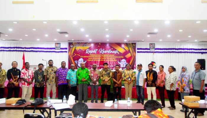 Melanesiatimes.com – Rapat Koordinasi Persiapan Pembentukan Kelompok Penyelenggara Pemungutan Suara (KPPS) pada Pemilihan Umum tahun 2024 tingkat PPD dan PPS Se-Kota Sorong, dilaksanakan di Mariat Hotel, Jumat (08/12/2023).