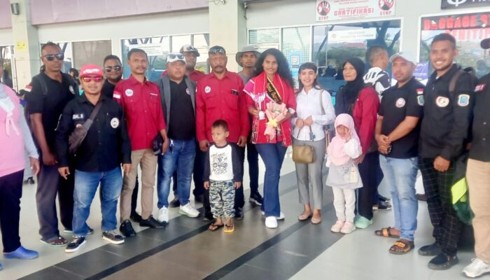 Penyambutan ini disambut dengan pengkalungan kain adat oleh ketua PMB, Mohammad Saman Bugis dan di ikuti pemberian Bunga oleh Bendahara Umum PMB Yustitia Udiata kepada Sang juara Putri Citra Indonesia Tahun 2023 Letisya Lerebulan.