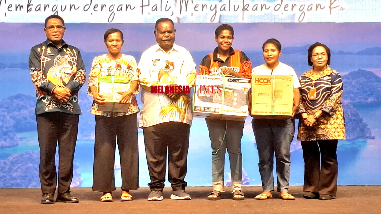 Penyerahan Bantuan kepada pelaku UMKM Kabupaten Maybrat oleh Gubernur Papua Barat Daya di Dampingi Selviana Sangkek Plt Kepala Dinas Koperasi dan UMKM Papua Barat Daya.